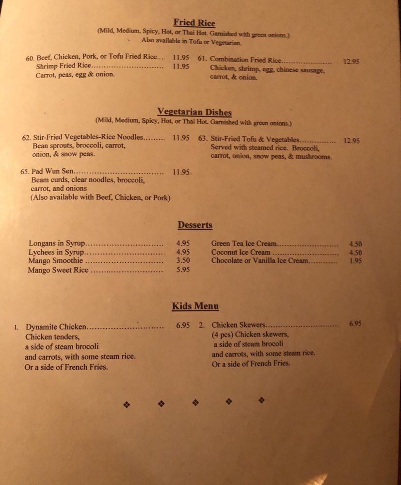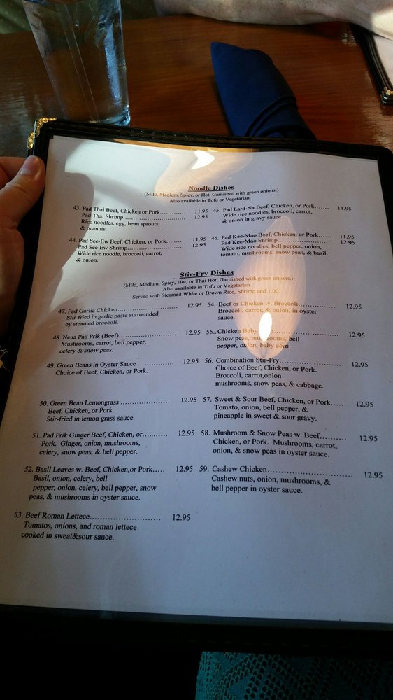 Introducing the menu at Pattaya Thai Restaurant where you'll find a variety of flavorful Thai dishes to choose from. The restaurant offers a range of options for everyone, including vegan and vegetarian choices. From traditional Thai salads like Beef Salad and Yum Duck Salad to tantalizing seafood options like Lemon Prawn and Pattaya Shrimp, there is something for every palate. Don't miss out on their authentic Thai soups, such as the Tom Kha Country Soup and Tom Yum Soup, perfect for warming you up on a chilly day. With a casual and quiet ambiance, Pattaya Thai Restaurant is ideal for groups, families, or even a quiet dinner for two. Enjoy your meal indoors or outdoors on their heated or covered seating areas. Don't forget to pair your meal with a selection from their beer and wine menu. Experience the taste of Thailand at Pattaya Thai Restaurant in Mount Pleasant, SC.